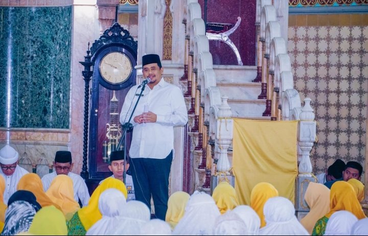 Medan, POL | Di hadapan ibu-ibu pengajian yang tergabung dalam Dewan Pimpinan Daerah (DPD) Pengajian Al Hidayah Kota Medan saat menggelar Shalat Tasbih, Dzikir dan Doa di Masjid Raya Al Mashun, Rabu (12/4/2023), Wali Kota Medan Bobby Nasution mengajak seluruh masyarakat Kota Medan untuk bersama-sama dengan Pemko Medan membangun Kota Medan. Dengan kolaborasi dan dukungan yang diberikan, ibukota Provinsi Sumatera Utara akan jauh lebih baik lagi ke depannya.