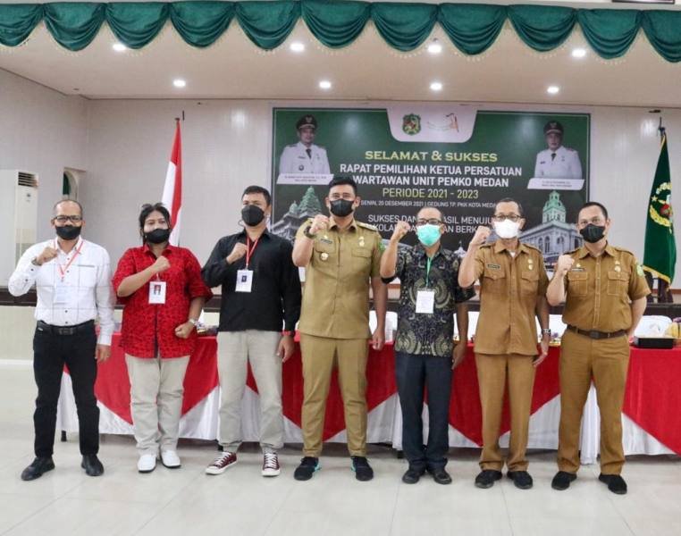 Medan, POL | Wali Kota Medan Bobby Nasution membuka kegiatan Pemilihan Ketua Wartawan Unit Pemko Medan Periode 2021-2023, Senin (20/12/2021) di Gedung PKK Medan. Dia mengapresiasi perhelatan ini dan mengharapkan kepengurusan yang nantinya terbentuknya dapat membawa organisasi ini mencapai tujuannya.