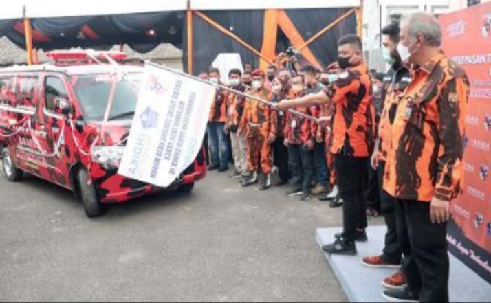 “Seperti hari ini, Pemko berkolaborasi dengan Pemuda Pancasila dalam penanganan pandemi Covid-19 di Medan,” ujar Bobby Nasution saat memberikan sambutan pada Pelepasan Tim Gugus Tugas Kota Medan Relawan Task Force Kemanusiaan PPKM Covid-19 Pemuda Pancasila Medan (PP)-Indika Foundation, Minggu (26/9/2021) di Jalan Sutrisno, Medan.