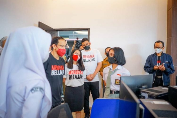 Medan, POL | Wali kota Medan Bobby Nasution bersama Menteri Pendidikan Kebudayaan Riset dan Teknologi Nadiem Anwar Makarim melakukan peninjauan Pembelajaran Tatap Muka (PTM) di Yayasan Perguruan Sultan Iskandar Muda, Jalan Sunggal, Gang Bakung Pekan I, Kecamatan Medan Sunggal, Selasa (26/10/2021). Peninjauan ini guna melihat pelaksanaan PTM yang dilakukan dengan penerapan Protokol Kesehatan yang ketat.