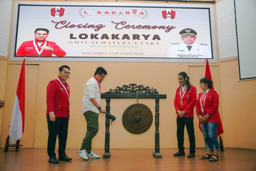 “Sebagai Wali Kota Medan, Bung Bobby Nasution selama ini banyak memberikan kontribusi dan dukungan kepada GMNI Sumut. Di samping itu, Bung Bobby juga tidak pernah sekali pun tidak hadir saat acara GMNI Sumut. Itu sebabnya Bung Bobby Nasution kita nobatkan sebagai Warga Kehormatan GMNI Sumut,” kata Ketua DPD GMNI Sumut Daniel Sigalingging dalam penutupan Lokakarya GMNI Sumut di Gedung BPMP Jalan Bunga Raya Medan, Minggu (25/9/2022).