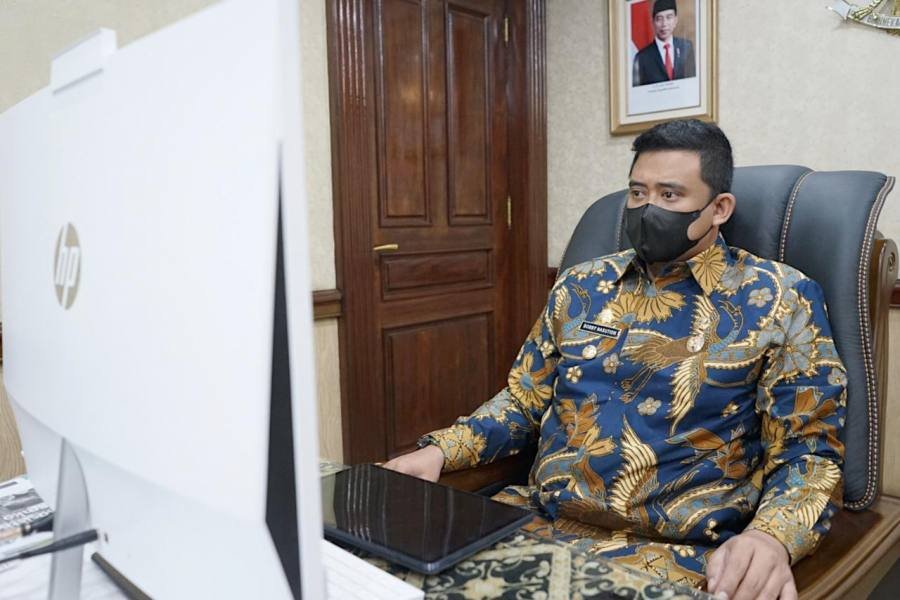 Medan, POL | Wali Kota Medan, Bobby Nasution mengikuti Pembekalan Kepemimpinan Pemerintahan Dalam Negeri bagi Bupati/ Wakil Bupati dan Wali Kota/Wakil Walikota Tahun 2021, Selasa (15/6/2021) secara virtual dari Ruang Khusus Wali Kota Medan.