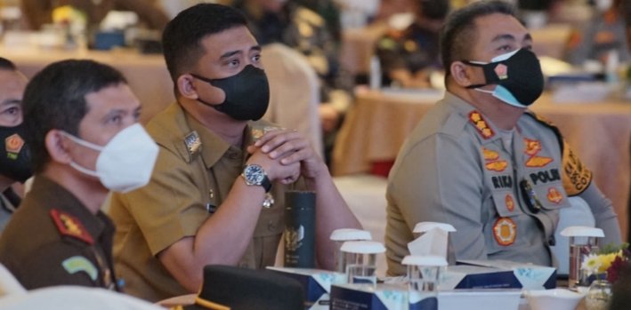 Medan, POL | Wali Kota Medan Bobby Nasution mengikuti Rapat Koordinasi (Rakor) Evaluasi PPKM dan Penyerapan Anggaran Penanganan Covid-19 se-Sumut di  Hotel Grand Aston City Hall, Medan, Senin (27/9).