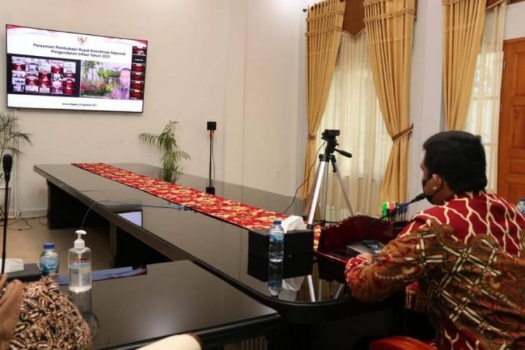 Medan, POL | Wali Kota Medan Bobby Nasution mengikuti Rapat Koordinasi Nasional (Rakornas) Pengendalian Inflasi 2021 di Istana Negara melalui zoom meeting dari Rumah Dinas Wali Kota, Rabu (25/8/2021). Rakornas ini dibuka langsung Presiden Republik Indonesia (RI) Joko Widodo (Jokowi).