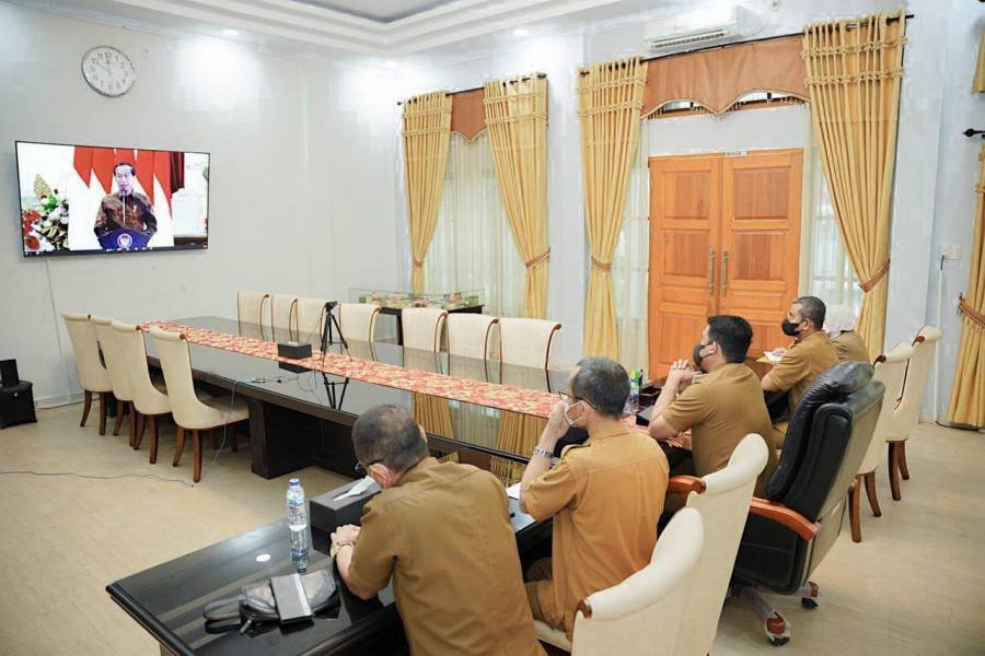 Medan, POL | Melalui sambungan virtual, Wali Kota Medan Bobby Nasution mengikuti Rapat Koordinasi Nasional (Rakornas) Pengendalian Inflasi Tahun 2022 dari Rumah Dinas Wali Kota, Jalan Sudirman Medan, Kamis (18/8/2022) pagi. Rakornas yang diikuti seluruh kepala daerah beserta Tim Pengendalian Inflasi Daerah (TPID) seluruh Indonesia ini dibuka langsung Presiden RI Joko Widodo.