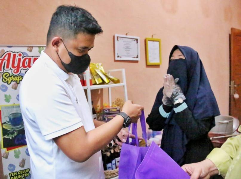 “Nanti langsung dilihat saja alat apa yang dibutuhkan.”kata Bobby Nasution sembari membeli beberapa produk yang dijual oleh Siti Mira Rachmi.