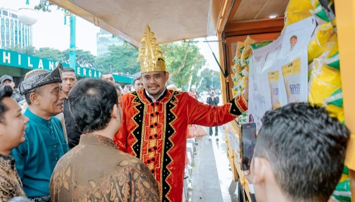 Medan, POL | Guna memenuhi kebutuhan pokok masyarakat dan menjaga stabilitas harga, Pemko Medan melalui PUD Pasar menghadirkan mobil pasar murah keliling. Mobil pasar murah keliling ini dilaunching Wali Kota Medan Bobby Nasution usai menjadi inspektur Upacara Peringatan HUT Proklamasi Kemerdekaan RI ke-78 di Lapangan Benteng, Kamis (17/8/2023).