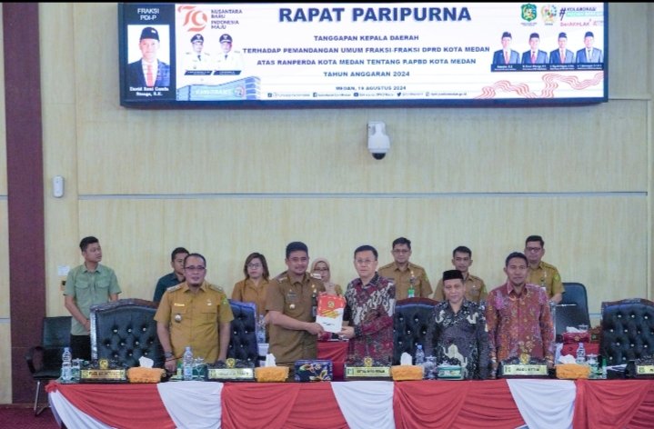 Hal ini disampaikan Wali Kota Medan Bobby Nasution saat menjawab Pemandangan Umum dari Fraksi Partai Golongan Karya (Golkar) dalam Rapat Paripurna dengan agenda Tanggapan Kepala Daerah terhadap Pemandangan Umum Fraksi-Fraksi DPRD Kota Medan atas Ranperda Kota Medan tentang P.APBD Kota Medan Tahun Anggaran 2024 di Gedung DPRD Kota Medan, Senin (19/8/2024).