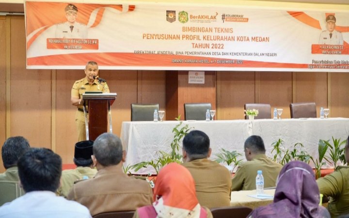 Demikian disampaikan Wali Kota Medan Bobby Nasution diwakili Asisten Pemerintahan dan Kesejahteraan Sosial, Muhammad Sofyan, saat membuka Bimbingan Teknis Penyusunan Propil Kelurahan Kota Medan, Selasa (6/12/2022) di Hotel Grand Kanaya.
