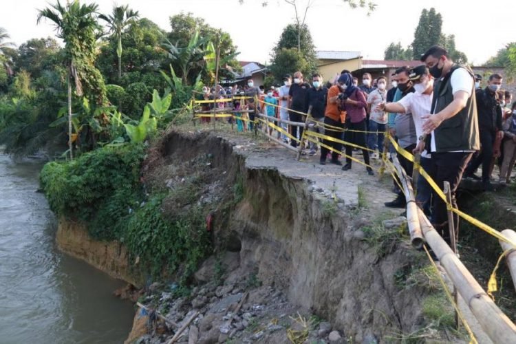 Medan, POL | Begitu menerima laporan warga jalanan tepian Sungai Denai di Jalan Seksama Gang Raja Aceh, Kelurahan Binjai, Kecamatan Medan Denai tergerus air sungai dan rentan amblas, Wali Kota Medan Bobby Nasution langsung gerak cepat (gercep) mendatangi lokasi, Minggu (16/1/2022).
