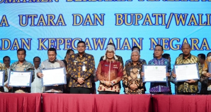 Sebagai bentuk dukungan penuh, Bupati dan Wali Kota se-Sumatera Utara yang hadir melakukan penandatanganan komitmen penerapan manajemen talenta bersama Kepala BKN RI.