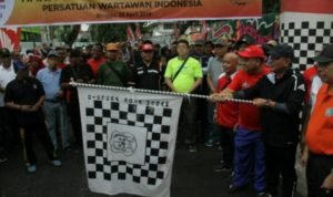 Medan, POL | Gubernur Sumatera Utara (Sumut) Edy Rahmayadi melepas secara resmi dan sekaligus mengikuti Jalan Santai bersama keluarga besar wartawan Sumut, dalam rangka peringatan Hari Pers Nasional (HPN) tahun 2019 di Kantor Persatuan Wartawan Indonesia (PWI) Sumut, Jalan Adinegoro Nomor 4, Medan, Minggu (28/4). Dikatakannya, untuk membangun Sumut bermartabat, dibutuhkan kepercayaan dan dukungan rakyat.