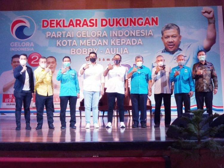Medan, POL | Partai Gelora mendeklarasikan dukungannya kepada Pasangan Calon (Paslon) Bobby Nasution-Aulia Rahman dalam Pemilihan Kepala Daerah (Pilkada) Kota Medan pada 9 Desember 2020 mendatang.