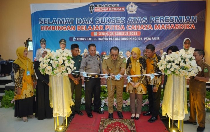 Hal ini disampaikan Wakil Wali Kota Medan H Aulia Rachman saat meresmikan Bimbingan Belajar (Bimbel) Putra Cahaya Mahardika di Reedys Hall, Jalan Kapten Rahmad Buddin Medan, Senin (28/8/2023). Pengguntingan pita dan penandatanganan prasasti oleh Aulia Rachman menjadi pertanda peresmian bimbel tersebut.