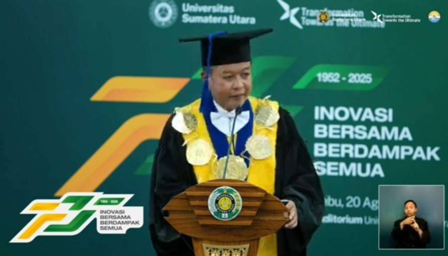 Hal itu dikatakan Rektor USU, Prof Dr Muryanto Amin, SSos MSi pada sidang terbuka Dies Natalis ke-73 Universitas Sumatera Utara, di Gedung Auditorium USU, Rabu (20/8/2025).