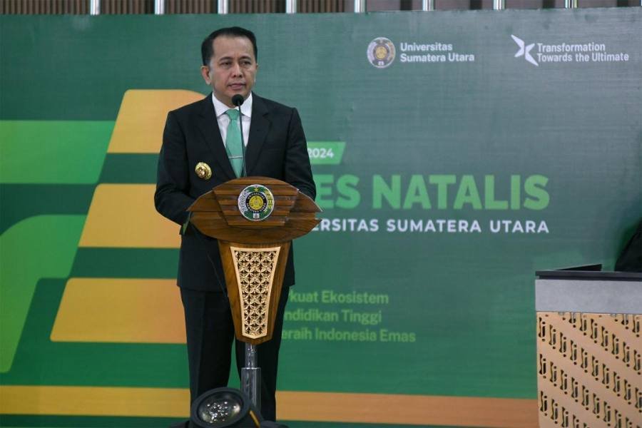 Dalam kesempatan yang sama, Rektor USU Muryanto Amin mengatakan peringatan Dies Natalis ke-72 dengan tema ‘Perkuat Ekosistem Pendidikan Tinggi Meraih Indonesia Emas’ menjadi momen penting bagi USU untuk konsistensi melahirkan pemuda yang pintar dengan memiliki standar global dunia pendidikan.