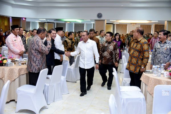 Medan, POL | Gubernur Sumatera Utara (Gubsu) Edy Rahmayadi menyerahkan dokumen Daftar Isian Pelaksanaan Anggaran (DIPA) 2019 untuk instansi vertikal, Kementerian Lembaga dan Pemerintah Kabupaten/Kota di Aula Raja Inal Siregar, Kantor Gubsu Jalan Pangeran Diponegoro Nomor 30 Medan, Jumat (14/12). Dalam pesannya, kepala daerah harus memastikan alokasi yang disampaikan punya manfaat yang besar untuk daerahnya masing-masing.
