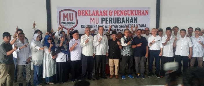 Medan, POL | Sebanyak 73 orang warga masyarakat dari berbagai elemen, dikukuhkan sebagai pengurus Kordinator Wilayah (Korwil) MU Perubahan Provinsi Sumut, Minggu (31/12/2023), di Seulawah Kupie, komplek MMTC Jalan Pancing Medan.
