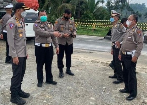 Medan, POL | Direktorat Lalu Lintas (Ditlantas) Polda Sumut melakukan peninjauan longsor yang berada di tepi jalan umum Medan-Berastagi tepatnya di KM 24, Desa Tiang Layar, Kecamatan Pancurbatu.
