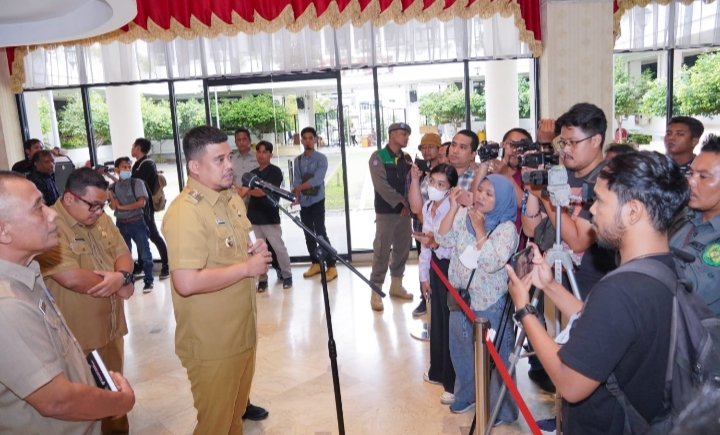 “Pada hari ini kami menyampaikan Direktur Utama PUD Pembangunan kami berhentikan dari tugasnya dan akan digantikan sementara direktur yang ada di PUD Pembangunan,” kata Wali kota Medan Bobby Nasution saat menggelar doorstop dengan wartawai di Lobi Balai Kota Medan, Selasa (9/5/2023).
