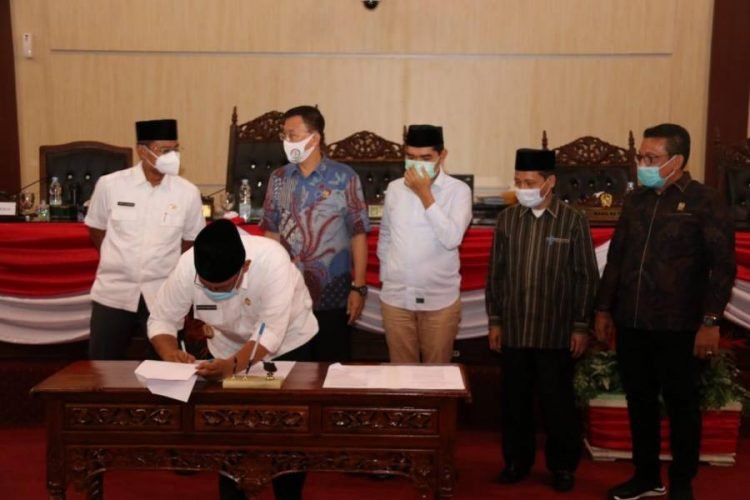 Medan, POL | DPRD Kota Medan menyetujui Rancangan Peraturan Daerah (Ranperda) Kota Medan tentang Perusahaan Umum Daerah Pasar Kota Medan dan Perusahaan Umum Daerah Pembangunan Kota Medan ditetapkan menjadi Perda Kota Medan dalam Rapat Paripurna di Gedung DPRD Medan, Jalan Kapten Maulana Lubis, Rabu (30/12/2020). Sebelum penandatanganan persetujuan dilakukan, rapat paripurna diawali dengan penyampaian laporan panitia khusus (pansus) serta pendapat seluruh fraksi di DPRD Medan.