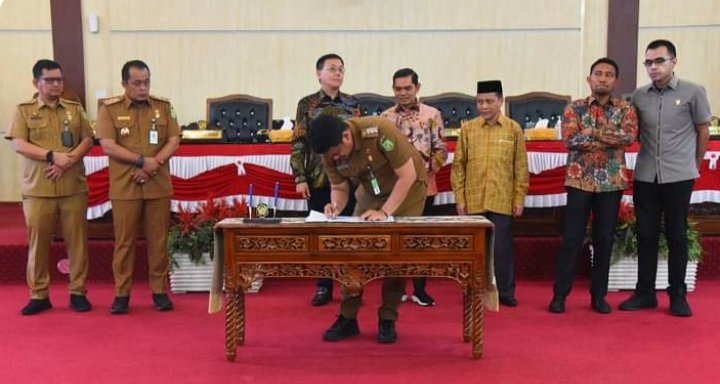 Medan, POL | Pimpinan DPRD Kota Medan bersama dengan Kepala Daerah dalam Rapat Paripurna DPRD Kota Medan menyetujui dan menandatangani Ranperda Kota Medan tentang Pajak dan Retribusi Daerah, Senin (04/12/2023).