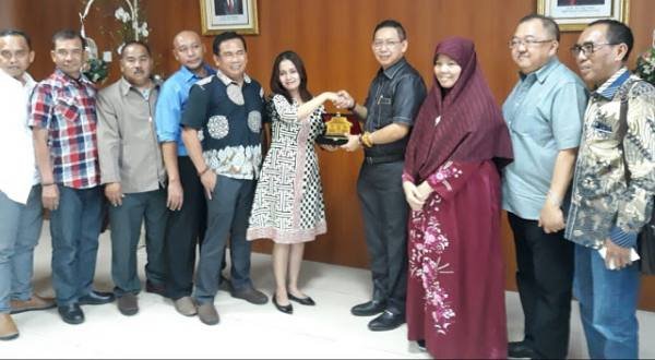 Medan, POL | DPRD Tangerang Selatan (Tangsel) melakukan kunjungan kerja (kunker) ke DPRD Medan, Senin (24/02/2020). Tujuannya mencari masukan mengenai pembuatan tata tertib bagi anggota legislatif. Mereka diterima jajaran Komisi 1 DPRD Medan.
