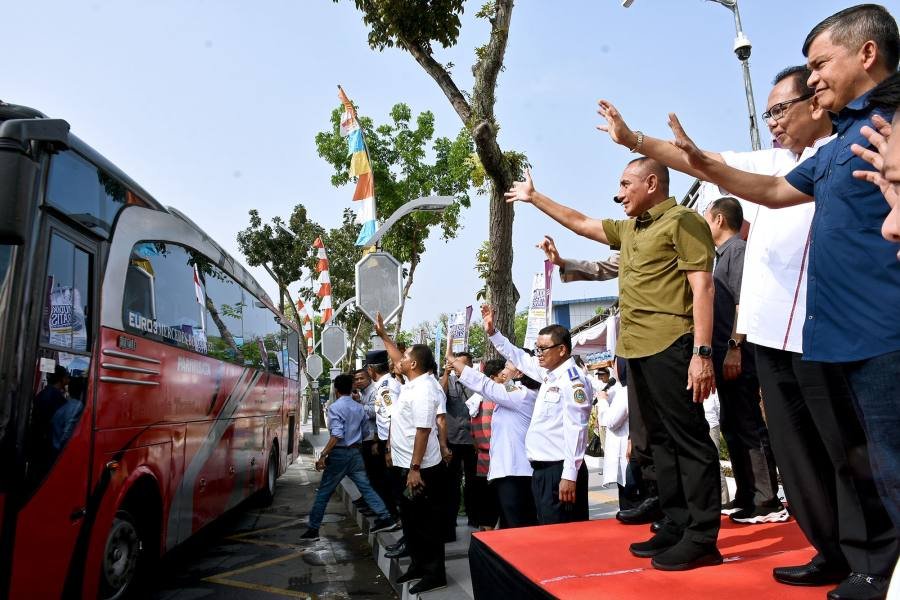 Medan, POL | Gubernur Sumatera Utara (Sumut) Edy Rahmayadi melepas keberangkatan 94 bus Mudik Gratis Bermartabat yang diselenggarakan oleh Pemerintah Provinsi (Pemprov) Sumut. Total peserta yang mengikuti mudik gratis tersebut sebanyak 3.500 orang.
