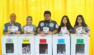 Medan, POL | Wali Kota Medan Drs H T Dzulmi Eldin S MSi MH bersama istri Hj Rita Maharani SH beserta ketiga buah hati tercinta menggunakan hal pilihnya dalam Pemilu 2019 dengan melakukan pencoblosan di Tempat Pemungutan Suara (TPS) 112 Komplek Citra Wisata Jalan Karya Wisata, Kelurahan Pangkalan Mansyur, Kecamatan Medan Johor, Rabu (17/4).
