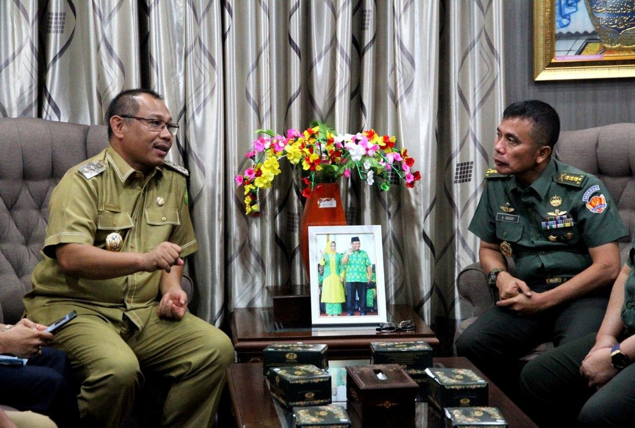 Medan, POL | Sebanyak 6 Perwira Siswa Sekolah Staf Komando Angkatan Darat (Seskoad) yang tengah melaksanakan Kuliah Kerja Lapangan Dalam Negeri (KKLDN) di wilayah Sumut mengunjungi Balai Kota Medan, Selasa (23/7/2019). Kedatangan mereka disambut langsung Wali Kota Medan Drs H T Dzulmi Eldin S MSi MH diwakili Wakil Wali Kota Medan Ir H Akhyar Nasution MSi di ruang kerjanya. Selain bersilaturahmi, kedatangan tersebut sekaligus menyampaikan apresiasi dan terima kasih kepada pemerintah daerah yang mendukung program KKLDN di Sumut khususnya Kota Medan.