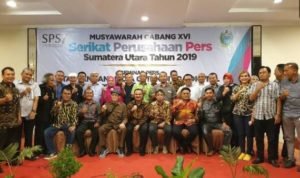 Medan, POL | Farianda Putra Sinik, SE, kembali terpilih secara aklamasi menjadi Ketua Serikat Perusahaan Pers (SPS) Cabang Sumut Priode 2020-2024, pada Muscab SPS Sumut Tahun 2019 di Garudaplaza Medan, Kamis (7/11/2019).