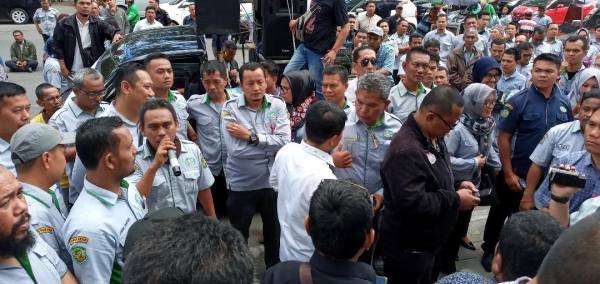 Medan, POL | Ratusan karyawan dan pegawai harian lepas (PHL) PD Pasar berunjuk rasa di kantor Bank Mandiri Jalan Pulau Pinang, Senin (24/02/2020), Aksi yang sama juga mereka gelar di Kejaksaan Negeri Medan.