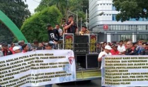 Medan, POL | Ratusan kader ormas Pemuda Merga Silima (PMS) melakukan aksi demonstrasi damai di depan kantor Balai Kota Medan, Kamis (22/1/2020), mendesak Plt Walikota mencabut SK Pemecatan Rusdi Sinuraya dari jabatan Dirut PD Pasar Kota Medan.