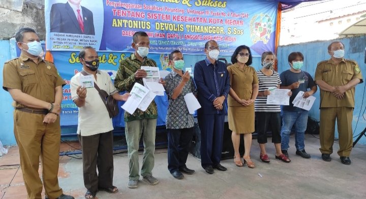 Di akhir kegiatan sosper, Antonius bagikan BPJS Kesehatan gratis dari pemerintah kepada masyarakat yang ada di Daerah Pemilihan (Dapul) I yang meliputi Kecamatan Medan Barat, Medan Helvetia, Medan Petisah dan Medan Baru. (POL/isvan)