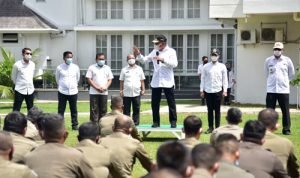 “Kalau di beberapa tempat itu ada namanya Polsus (polisi khusus), seperti di perusahaan. Kalau di sini ada Satpol PP. Karena itu kalian harus kuat, nanti semua harus bisa bela diri untuk pertahanan,” sebut Gubernur yang meminta sejumlah personel memperagakan penggunaan senjata double stick.