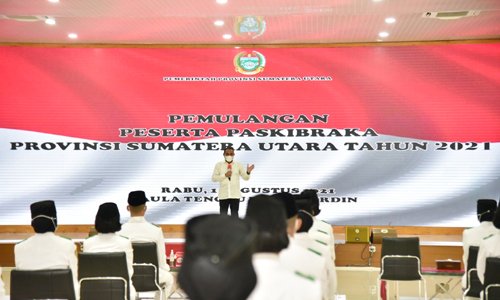 Pesan itu disampaikan Gubernur Edy Rahmayadi saat upacara Pemulangan Peserta Pasukan Pengibar Bendera Pusaka (Paskibraka) Provinsi Sumut Tahun 2021 di Aula Tengku Rizal Nurdin, Rumah Dinas Gubernur, Jalan Jenderal Sudirman Nomor 41 Medan, Rabu (18/8/2021) sore.