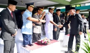 Turut hadir pada upacara tersebut Ketua DPRD Sumut Wagirin Arman, Wakapolda Sumut Mardiaz Kusin Dwihananto, Kasdam I/BB Hassanudin, Wakil Kepala Kejati Sumut Yudhi Sutoto, Pangkosekhanudnas III Medan Djohn Amarul, Danlantamal I Belawan Ali Triswanto, Kepala BNN Sumut Atrial, Danlanud Soewondo Dirk Poltje Lengkey, Wakil Walikota Akhyar Nasution, OPD Pemprov Sumut dan Pemko Medan, jajaran TNI/Polri, para ASN, tokoh agama, tokoh pemuda, tokoh masyarakat, dan siswa SMA dan SMP Kota Medan. (POL/W)
