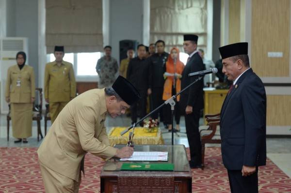 Medan, POL | Gubernur Sumatera Utara (Gubsu) Edy Rahmayadi melantik 9 Pejabat Pimpinan Tinggi Pratama (Eselon II) dan 13 Pejabat Administrator (Eselon III) di lingkungan Pemerintah Provinsi (Pemprov) Sumut, Jumat (9/8), di Aula Raja Inal Siregar, lantai 2, Kantor Gubernur Sumut, Jalan Pangeran Diponegoro Nomor 30 Medan. Para pejabat yang dilantik diingatkan untuk senantiasa mengutamakan sikap disiplin dalam bekerja.
