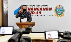 Medan, POL | Gugus Tugas Percepatan Penanganan Covid-19 Provinsi Sumatera Utara (Sumut) menegaskan bahwa hingga kini imbauan kepada masyarakat agar mematuhi lima protokol kesehatan terus dilakukan dan diperbanyak intensitasnya melalui berbagai media. Namun jika ada indikasi lonjakan, keputusan pambatasan sosial berskala besar (PSBB) akan dipertimbangkan.