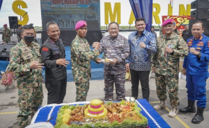 “Selamat ulang tahun Marinir. Tetap siap, sedia dan siaga menjaga kedaulatan NKRI,” kata Bobby Nasution di hadapan unsur Forkopimda Kota Medan yang hadir dan para prajurit yang identik dengan Baret Ungu dan memiliki julukan ‘Hantu Laut’ tersebut.