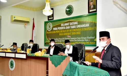 Hal ini dikatakannya saat menghadiri pengukuhan Dewan Pimpinan (DP) MUI Sumut masa khidmat 2020-2025 yang berlangsung di Aula MUI Sumut, Jalan Sutomo Ujung/Majelis Ulama Nomor 3 Medan, Kamis (11/2). Hadir di antaranya Wakil Gubernur Sumut Musa Rajekshah, Sekretaris Jenderal MUI Pusat Amirsyah Tambunan, Ketua Dewan Pertimbangan MUI Sumut Abdullahsyah, Ketua Umum DP MUI Sumut Maratua Simanjuntak beserta seluruh pengurus MUI Sumut.