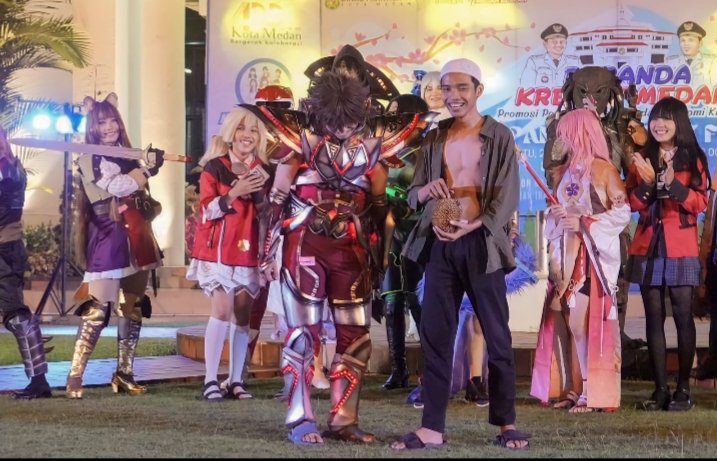 Medan, POL | Ajang Beranda Kreatif Medan, Sabtu (22/7/2023) di halaman depan kantor Wali Kota Medan disemarakkan Japan Community Fest (J-Comm Fest). Penampilan band dengan lagu-lagu Jepang, tarian, dan cosplayer menghibur pengunjung.