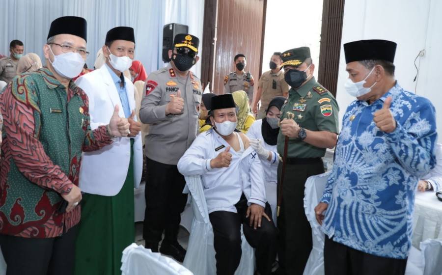 Medan, POL | Kapolda Sumut, Pangdam I/BB, Kabinda dan ketua PWNU Sumut serta Kakanwil Kemenag Sumut menggelar program satu juta vaksinasi booster yang dimulai pada hari ini, Kamis (21/4/2022).