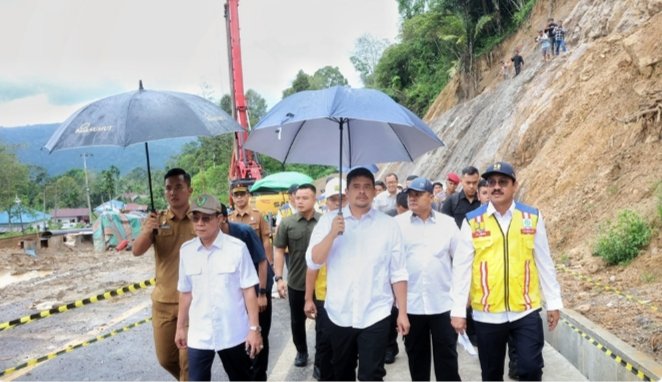 Tapsel, POL | Menjelang masa mudik Lebaran 2025, Gubernur Sumatera Utara (Sumut) Muhammad Bobby Afif Nasution meninjau kondisi jalan nasional Batu Jomba di Kabupaten Tapanuli Selatan (Tapsel), Senin (17/03/2025). Tinjauan dilakukan untuk memastikan pemudik dapat melintas dengan aman dan nyaman.