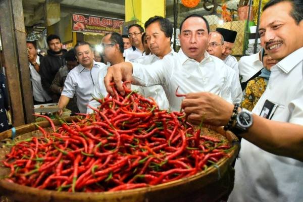 Medan, POL | Guna memastikan harga bahan pokok menjelang perayaan Natal 2019 dan Tahun Baru 2020, Gubernur Sumatera Utara Edy Rahmayadi melakukan inspeksi mendadak (Sidak) ke Pusat Pasar Medan, Jalan Pusat Pasar, Medan, Rabu (4/12/2019). Hasilnya, diketahui harga sejumlah bahan kebutuhan pokok relatif stabil, meski ada beberapa komoditas harganya naik dan ada juga yang turun.