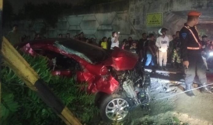 Medan, POL | Mobil Picanto (KIA) warna merah rusak parah usai ditabrak kereta api di Jalan KL Yos Sudarso, Kecamatan Medan Barat, Kota Medan, Selasa (2/4/2024) tadi malam.