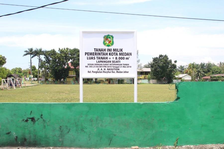Medan, POL | Lapangan Sejati di Jalan Karya Jaya, Kelurahan Pangkalan Masyhur, Kecamatan Medan Johor, merupakan aset Pemko Medan. Semua surat terkait kepemilikan lahan tersebut ditandatangani Penghulu Simpang Tiga Titi Kuning Pangkalan Masyhur, Ibrahim, atas nama Pemerintah, bukan pribadi.