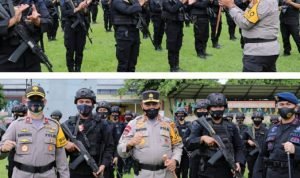 Medan, POL | Kapolda Sumut pimpin apel pemberangkatan 200 personil Brimob Polda Sumut BKO ke Polda Metro Jaya dalam rangka pengamanan memperkuat penebalan personil dalam rangka Ops lilin 2020 di Jakarta, Kamis (17/12/20) bertempat di Lapangan Sat Brimob Polda Sumut.