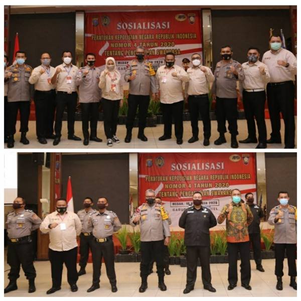 Medan, POL | Kapolda Sumut Irjen Pol Drs Martuani Sormin, M.Si membuka acara Sosialisasi Perpol No. 4 Tahun 2020 tentang Pengamanan Swakarsa bertempat di Convention Hall Hotel Garuda Plaza Jl. SM Raja Medan, Rabu (18/11)