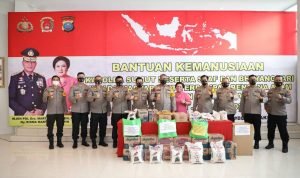 Medan, POL| Kapolda Sumut beserta Ketua Bhayangkari Daerah Sumut serahkan bantuan kemanusiaan secara simbolis untuk masyarakat terdampak bencana alam di Sulawesi Barat dan Kalimantan Selatan bertempat di KDH Kapolda Sumut, Kamis (21/01/21)